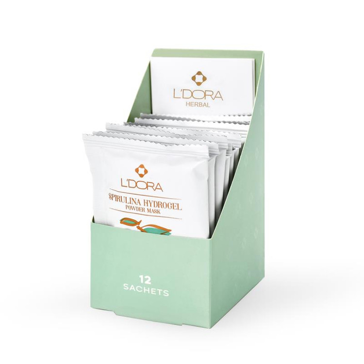 L’DORA Care Spirulina Hydrogel Powder Mask Containing Hyaluronic Acid and Collagen, 12 PCS
