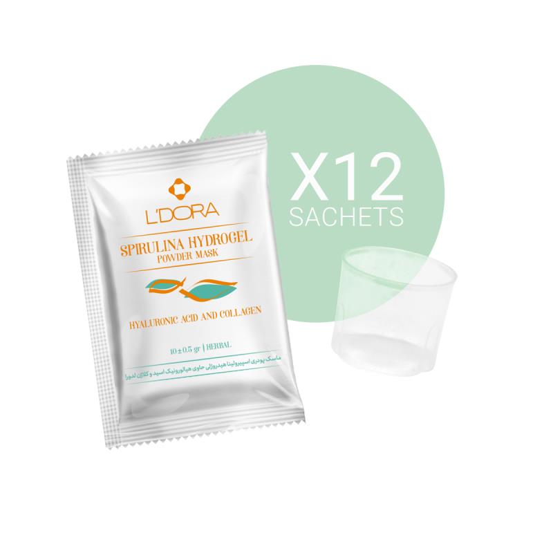ماسک پودری اسپیرولینا هیدروژلی حاوی هیالورونیک اسید و کلاژن لدورا کر 12 عددی
