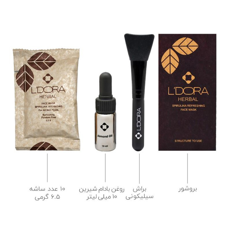 ماسک پودری اسپیرولینا آب رسان لدورا هربال 10 عددی