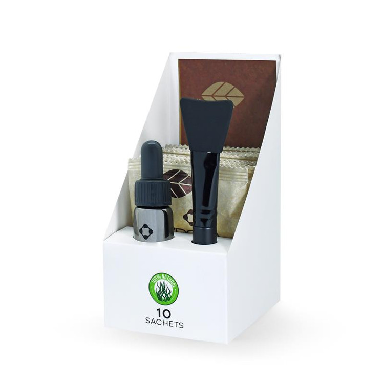 بسته را از محل پرفراژ شده باز کرده و یک قاشق غذاخوری از پودر را با 21 سی سی آب (معادل 3 قاشق غذاخوری سرپر )و 3 قطره روغن بادام شیرین ( اگر پوست شما خشک است چند قطره بیشتر روغن اضافه کنید ) سپس به کمک براش سیلیکونی ، مواد را با هم مخلوط کنید تاخمیری روان و یک دست شود طوری که نه زیاد سفت باشد که نتوان روی صورت صاف کرد نه آنقدر شل باشد که از صورت بریزد . سپس به کمک همان براش خمیر بدست آمده را بصورت یک لایه ضخیم و یک دست روی پوست قرار داده و بعد از 20 دقیقه صورت خود را با آب بشویید