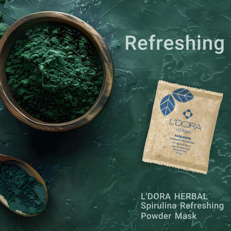 L'DORA HERBAL Spirulina Refreshing Powder Mask, 10 PCS